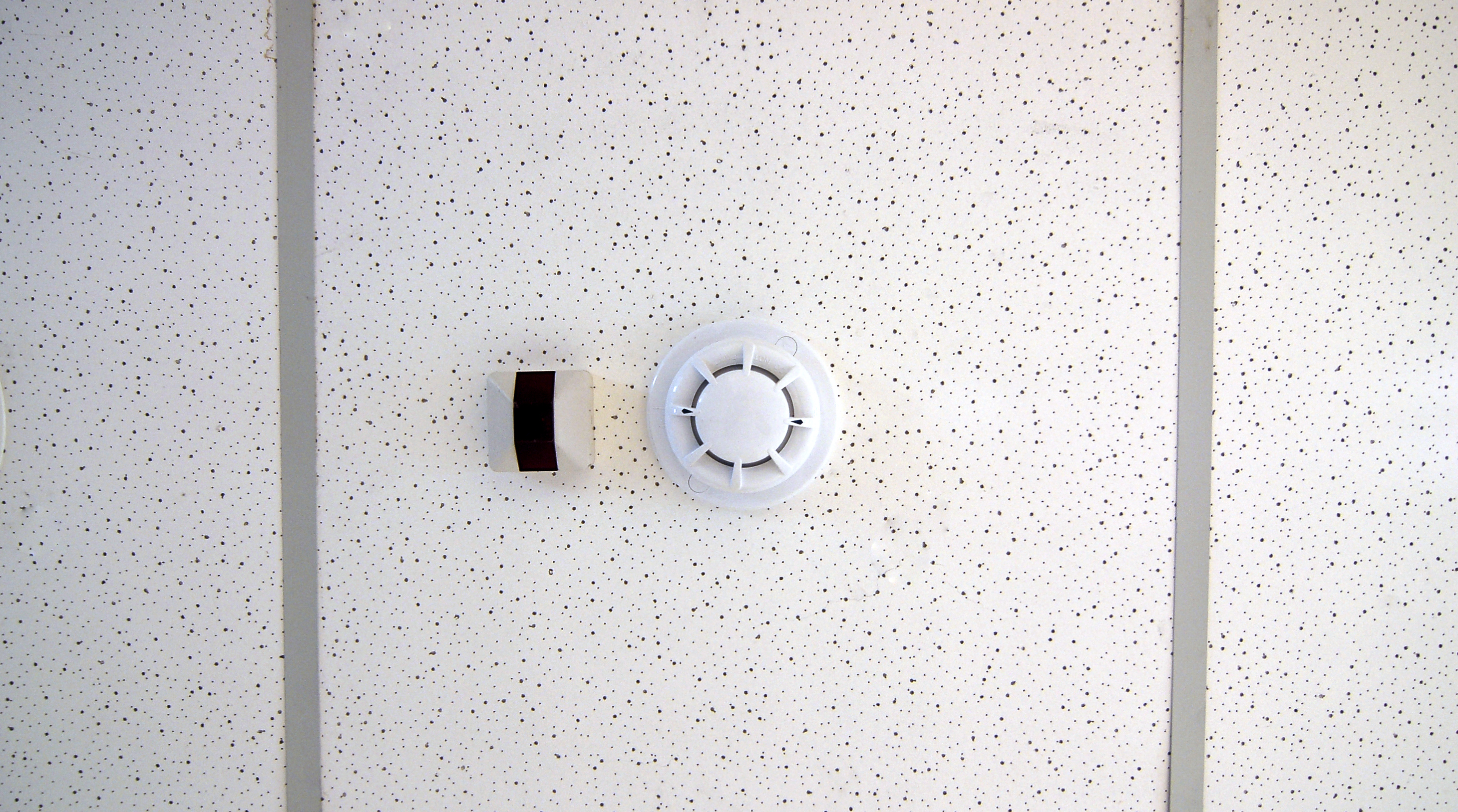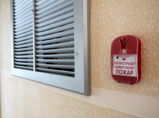 Здание оборудовано аналоговой адресной пожарной сигнализацией состоящей из главной панели, дымовых и тепловых извещателей, ручных пожарных извещателей с разбиваемым стеклом, пожарных извещателей за подвесными потолками.