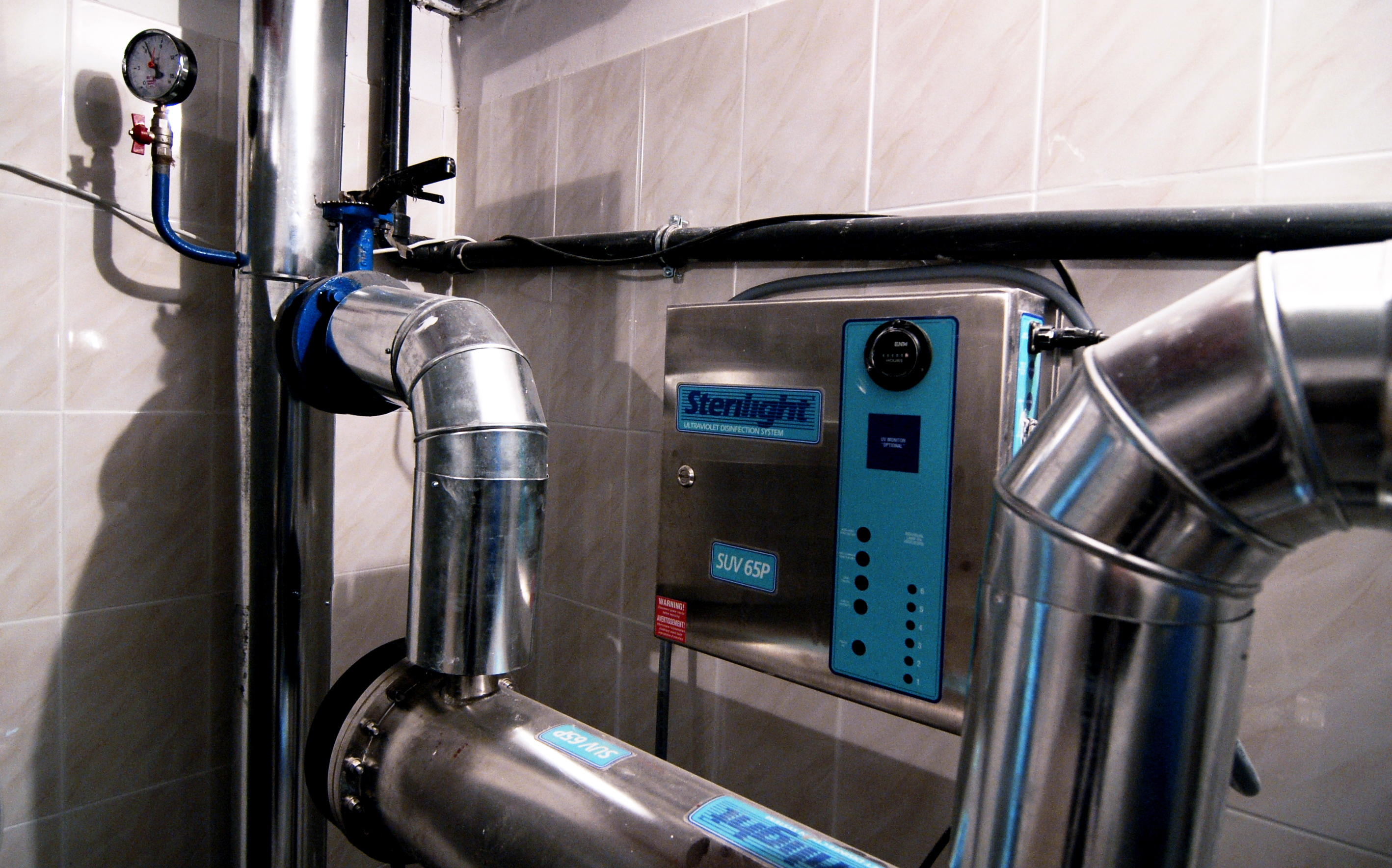 Водоснабжение здания обеспечивается от общего городского водопровода двумя независимыми вводами. Для обеспечения требуемого напора в питьевом водопроводе установлена повысительная насосная станция («WILO», Германия), в которой установлен прибор ультрафиолетового обеззараживания воды и механический фильтр тонкой очистки.
